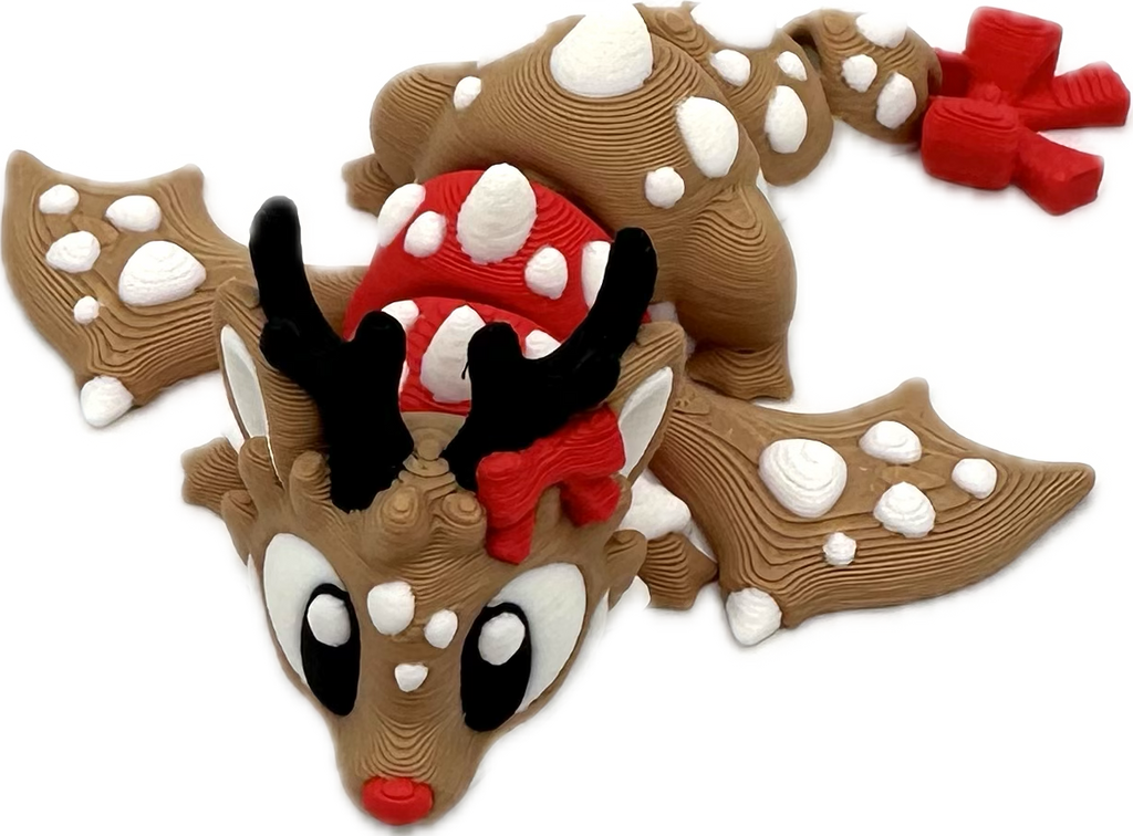 3D-gedruckt mit viel Liebe zum Detail, erinnert dieser kleine Drache mit seinen sanften Formen und den niedlichen Geweih-Hörnchen an eine kuschelige Winterfigur – als wäre er direkt aus einem verschneiten Weihnachtsmärchen entflohen.